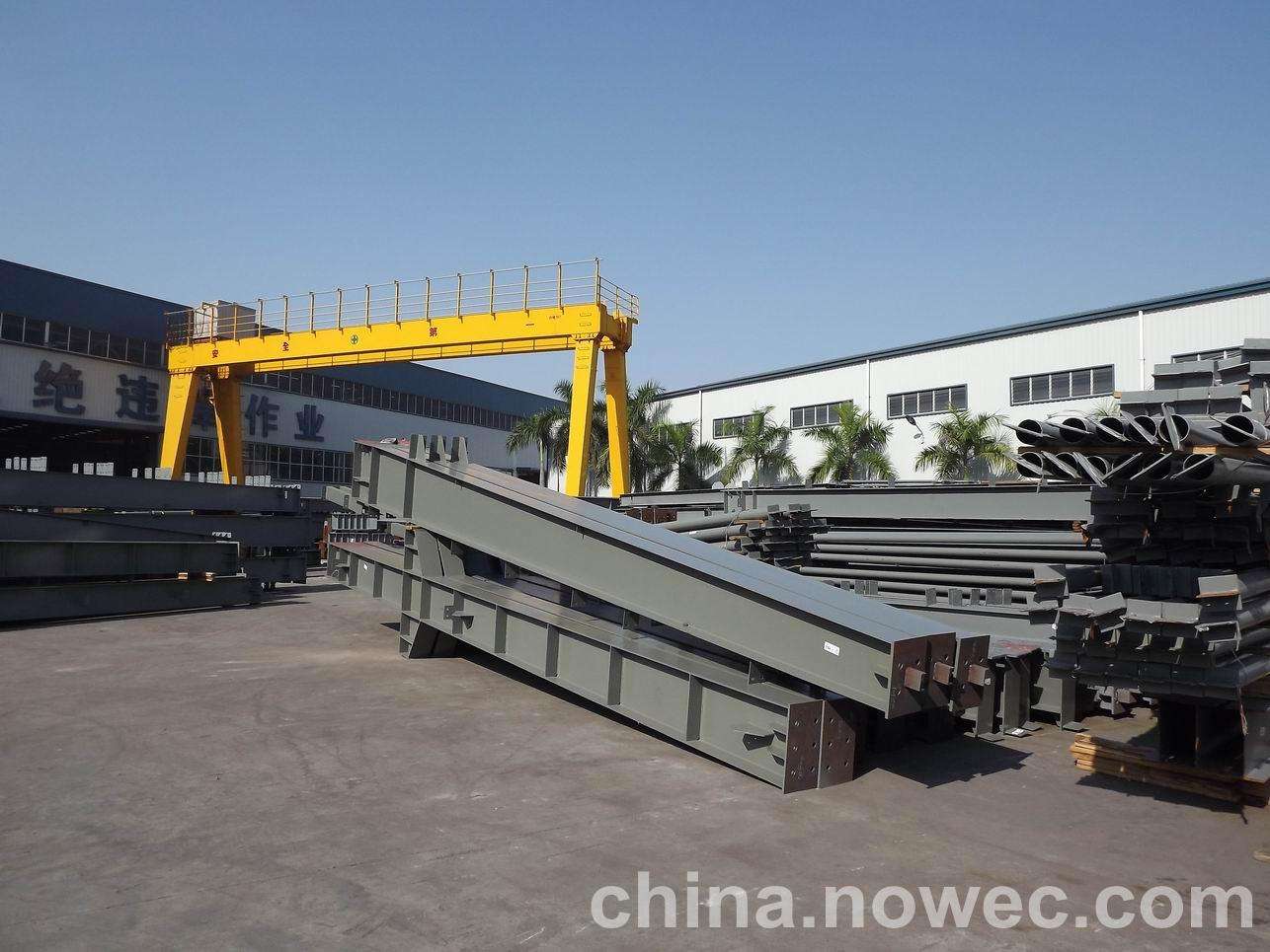 条状单元一般沿长跨方向分割,其宽度约为1~3个网格,其长度为l2或l2/2(l2为短跨跨距)。块状单元一般沿蚌埠网架平面纵横向分割成矩形或正方形单元。每个单元的重量以现有起重机能胜任为准。条(块)与条(块)之间可以直接拼装,也可空一网格在高空拼装。由于条(块)状单元是在地面拼装,因而高空作业量较高空散装法大为减少,拼装支架也减少很多,又能充分利用现有起重设备,故较经济。这种安装方法适用于分割后网架的钢度和受力状况改变较小的各类中小型网架,如两向正交正放四角锥、正放抽空四角锥等网架。